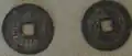 ![]() First and last Vietnamese cash coins: Thái Bình Hưng Bảo (太平興寶) issued during the Đinh dynasty (970–980). Bảo Đại Thông Bảo (保大通寶) issued under Bảo Đại (1925–1945). | |