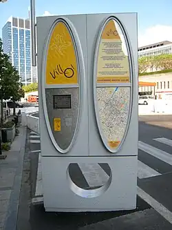Villo! (a portmanteau of the French words ville ("city") and vélo ("bicycle")) is a public bicycle rental programme in Brussels-Capital Region, Belgium. It was launched on 19 May 2009 in cooperation between the Brussels-Capital region and the company JCDecaux as a replacement of the former scheme Cyclocity, launched in 2006.