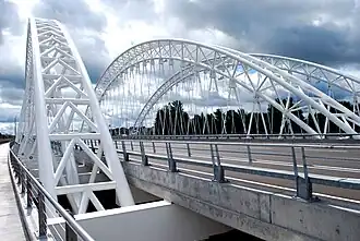 The Vimy Memorial Bridge (previously the Strandherd-Armstrong Bridge[1]) is a bridge in Ottawa, Ontario, Canada. Completed in 2014, it crosses the Rideau River, connecting Strandherd Drive in Barrhaven and Earl Armstrong Road in Riverside South. The bridge was the 2015 winner of the Gustav Lindenthal Medal.[2] It is named after the Battle of Vimy Ridge, as suggested by two Royal Canadian Legions in Ottawa.[1]