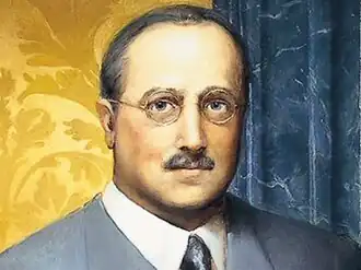 Vincenzo Azzolini (5 December 1881 – 2 August 1967) was an Italian economist. He served as Governor of the Bank of Italy between 1931 and 1944 in succession to Bonaldo Stringher. It was a challenging time politically, economically and internationally. Commentators conclude that he confronted the difficulties he encountered as Bank Governor with considerable skill and dexterity.[1] Towards the end of 1944 he was dismissed from office. He was accused of High Treason and was convicted of handing the Italian gold reserves over to the Germans. On 14 October 1944 he was sentenced to a thirty-year jail term. Slightly under two years later, on 28 September 1946, he was released under the terms of the Togliatti amnesty. By 1948 passions had cooled a little and the Supreme Court of Cassation reversed the original conviction, stating that his failure to prevent the German Army from removing the Italian gold to Berlin in 1943 did not amount to a crime ("...il fatto non costituisce reato").[1][2][3]
