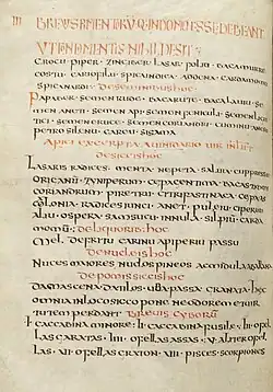 - ^ Milham, Mary Ella (1972). "Leyden and the 'fortuna' of Apicius". Renaissance Quarterly. 25 (2): 190. doi:10.2307/2859236. JSTOR 2859236. Retrieved 24 April 2024. For the manuscript, see BnF, MS lat. 10318, fols. 196–203.