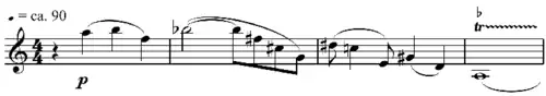 Though the piece does not employ twelve-tone technique, it contains twelve-tone themes, such as in the first and third movements: