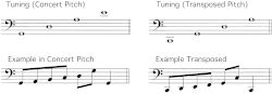 - ^ The existence of two basses, a smaller one and a larger one, was also a feature of the viol family, which had two types of violone tuned one fourth apart