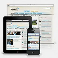 Virato's back end system screens the social distribution of an article's link via a social media API repeatedly throughout the day. A corresponding algorithm then measures and sorts the article based on its social score. Virato.de has been implemented using responsive web design and is available across all devices.[5]
