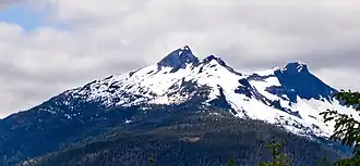 Virginia Peak is a 3,760-foot (1,146 m) mountain summit in Alaska, United States. The peak is located 17 miles (27 km) south-southwest of Wrangell in Tongass National Forest on Etolin Island. Precipitation runoff from the mountain's slopes drains to Anita Bay and Zimovia Strait. Although modest in elevation, topographic relief is significant as the summit rises from sea-level at Anita Bay in 1.3 miles (2.1 km). The mountain was named in 1886 by US Navy Lieutenant Commander Albert Sydney Snow in command of the United States Coast and Geodetic Survey steamer Patterson,[4] and the toponym has been officially adopted by the United States Board on Geographic Names.[3] Virginia Peak is the southernmost peak of the "Three Sisters" along with Helen Peak (3,856 ft) and Bessie Peak (3,915 ft).[5]