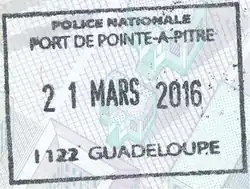 - ^ a b c d e f g h i j "Arrêté du 26 juillet 2011 relatif aux documents et visas exigés pour l'entrée des étrangers sur le territoire de la Guadeloupe, la Guyane, la Martinique, La Réunion et de la collectivité de Saint-Pierre-et-Miquelon" [Order of 26 July 2011 regarding the documents and visas required for the entry of foreigners in the territory of Guadeloupe, French Guiana, Martinique, Réunion and the collectivity of Saint Pierre and Miquelon] (in French). Légifrance.