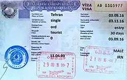 - ^ "The electronic visa system of Azerbaijan Republic". evisa.gov.az. Archived from the original on 28 August 2017. Retrieved 19 October 2017.