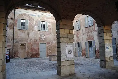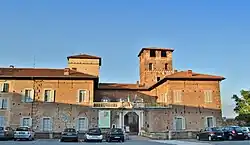 In the second half of the 16th century, Gaspare Visconti, archbishop of Milan and owner of the castle, further transformed it. A new wing facing the town of Fagnano was added, accentuating the residential character of the complex. The original courtyard was thus preceded by a second one accessible through the new entrance of the castle. A moat was dug to separate the castle from the first houses of Fagnano (today Piazza Cavour) and a bridge was built over it to reach the main door of the castle.[1][3]