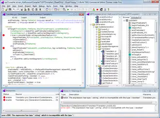 Visual Prolog contains a compiler which generates x86 and x86-64 machine code. Unlike standard Prolog, programs written in Visual Prolog are statically typed. This allows some errors to be caught at compile-time instead of run-time.