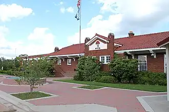 It is a one-story brownish-red brick building with Craftsman influence that was built in 1921.[2][3]