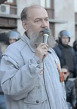 In April 2014 he was Speaker of the People's Council of the People's Democratic Republic of Donetsk.[7] After the formation of the branches of power, the DNR was appointed to the position of vice-speaker of the Supreme Council of the republic, while Denis Pushilin became the speaker.[8]