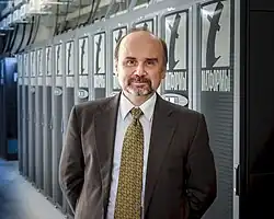 ![]() Vladimir Voevodin with Lomonosov Supercomputer in the background | |