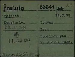 Preissig, along with his daughter Irena Bernášková, supported the Czech resistance during both World Wars and was arrested in 1940 for doing graphic design work for one of the most important magazines of the resistance, called V boj ("Into the Fight"), that had been outlawed by German authorities. He died on 11 June 1944 in Dachau concentration camp.[1][11]