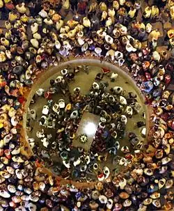 Likewise, looking downwards from the top dome walkway, the round floor opening is seen to encircle the sun disc illumination.