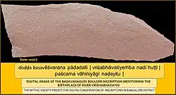 Inscription dated to the 16th century mentioning that the river originates at the feet of Basaveshwara at the Big Bull Temple