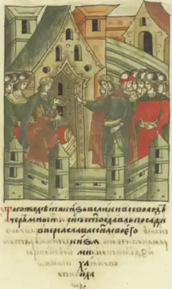 - ^ Ukrainian: Всеволод Святославич Чермний, romanized: Vsevolod Svyatoslavych Chermnyi. Russian: Вcеволод Святославич Чермный, romanized: Vsevolod Sviatoslavich Chermnyi. His baptismal name was Daniel; Ukrainian: Дани́ло, romanized: Danylo; Russian: Даниил, romanized: Daniil.