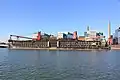 The old shipyard area has since been occupied by other companies. ABB Marine used the old block assembly halls for the construction of Azipods until 2007,[3] Aker Arctic opened a new ice model test facility next to the old dry dock in 2006,[4] and Paulig constructed a modern coffee roasting plant where the main gate of the Vuosaari shipyard once stood.[5] Over the years most of the old buildings, such as the design office close to the dry dock gate, have been demolished. The intermediate gate was also later scrapped and its steel plating re-used in a barge.