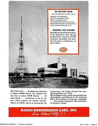 11. ^ "Radio Engineering labs featuring WGTR (advertisement)". Broadcasting. April 2, 1945. p. 43. Retrieved November 2, 2024.