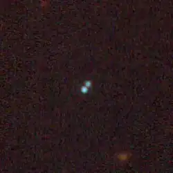 WISE J1711+3500 was discovered in 2011 with the Wide-field Infrared Survey Explorer and with a spectrum from NASA IRTF as a T8 dwarf.[4] In 2012 it was discovered that this object is a binary from imaging with the Keck telescope. The individual spectral types were estimated to be T8 for the primary and T9.5 for the secondary. The pair is separated by 15 ± 2 astronomical units (AU). For an age of 1 billion years the masses are around 19–23 MJ for the primary and around 8.1–10.7 MJ for the secondary. For an age of 5 billion years the masses are around 44–48 MJ for the primary and 20–26 MJ for the secondary. The orbital period was poorly constrained, but is larger than 200 years.[1]