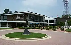 The station building, shared by WRAL-TV and WRAZ, and located at 2619 Western Boulevard in Raleigh, adjacent to the North Carolina State University campus, is a modern and open-designed structure and grounds. The property features a fountain visible from the roadway near the building entrance, a helipad on top of the building for the landing of Sky 5, and a large garden in the back of the property, including many varieties of azaleas and other flowering plants including several types of dogwoods. The garden is a popular public attraction, especially during April when the flowers are at the peak of blooming.