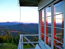 The original fire lookout tower was built on this site in 1926 and was a small cabin. In 1929 a cupola style lookout replaced the cabin. The current flat top lookout was built in 1956.[1] The lookout is currently unstaffed and no longer a functioning lookout.[2]