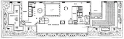The main corridor was nicknamed "Peacock Alley" by the New York press.[76] The corridor and foyer were treated with pilasters and columns of Sienna marble and a color scheme on the walls and ceilings of salmon-pink, with cream-color and pale-green. The capitals of the columns and pilasters were gilded of solid brass or lacquered. The main corridor ran the entire length of the building from east to west.[g] To the left of it was the Astor Dining Room, fronting on Fifth Avenue, which measured 50 by 92 feet (15 m × 28 m). Great care was taken with it to faithfully reproduce the original dining room of the mansion, three floors above where the original dining room had stood,[78] including all of the original dining room's paneling, carpeting, drapery and fireplace mantel; Italian Renaissance pilasters and columns, carved of marble from northern Russia. The panels of silk hangings were of rose pompadour, and a series of Charles Yardley Turner mural paintings filled arches and panels at the south end of the room.[66][h] On the right of the main corridor was the Garden Court of Palms, 88 by 57 feet (27 m × 17 m), rising three stories to a dome-like roof of amber glass 56 feet (17 m) above the floor. This, too, was used as a dining room. It was decorated in the Italian style, finished in gray, terracotta and Pavonazzo marble.[66] On the 34th Street side of the corridor was the cafe, 40 by 95 feet (12 m × 29 m), finished in English oak in the style of the German Renaissance, with Flemish decoration. The bar formed another room 40 by 50 feet (12 m × 15 m).[66]