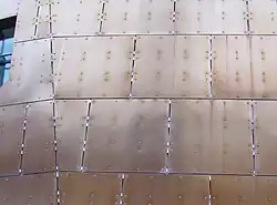 We all know that steel making has been important to south Wales, just as slate making has changed the landscape of the north. We have to use a special type of steel that won't go rusty near to the salt-laden, maritime air of Cardiff Bay. This stainless steel will be made near to Pontypool. For the Wales Millennium Centre I thought it was important that the materials should have a "natural" texture, and that they should be instantly recognisable to anyone seeing them, even from a distance. For this reason I felt it was important that the steel of the shell should have the rough grain and the riveted pattern that we think of as more typical of old industrial structures, such as those that used to be commonplace around the landscape of the industrial south. —Jonathan Adams[33]