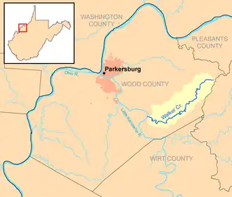 ![]() Walker Creek and its watershed in Wood County, West Virginia | |
