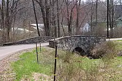A concrete slab bridge carrying T-436 and Market Street over Walker Run was built in 1937. The bridge is 25.9 feet (7.9 m) long and is located 1.5 miles (2.4 km) north of US Route 11.[10] A road known as Denns Road also crosses the stream.[3]