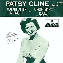 - ^ Cline, Patsy (1957). ""Walkin' After Midnight" / "A Poor Man's Roses (Or a Rich Man's Gold)" (7" vinyl single insert sleeve)". Decca Records. 9-30221.