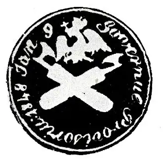 On July 11, 1848, the false rumor that the Imperial Russian Army had left Bessarabia and was moving southwards cause the regency to leave Bucharest and take refuge in Târgoviște.[44] This occurred after Russia had occupied Moldavia in April, a result of the unsuccessful revolt in that country.[47] The moment was seized by conservatives: headed by Metropolitan Neofit, the latter grouping took over, and announced that the revolution had ended.[44] When a revolutionary courier returned from the Moldavian town of Focșani with news that Russian troops had not left their quarters, the population in the capital prepared for action—during the events, Ambrozie, a priest from the Buzău Bishopric, made himself the revolutionary hero of the hour and earned the nickname Popa Tun, the "Cannon Priest", after ripping out the lit fuse of a gun aimed at the crowds.[44] The outcome caused Neofit to invalidate his own proclamation, and to transfer his power back to the Provisional Government (July 12).[44]