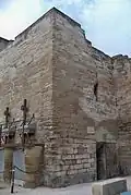 The new suburbs were protected with temporary wooden structures while the stone walls were being built.[32][33][34] Limestone for the walls and towers came from a quarry on the other side of the Rhône above Villeneuve-lès-Avignon, wood came from Savoy, lime for the mortar came from Villeneuve-lès-Avignon and sand came from islands in the Rhône.[35] By 1372 the new walls were sufficiently advanced to protect the town against a band of mercenaries en route to Italy.[36][34] Work continued and in 1381 the merlons near the Dominican monastery (Porte des Prêcheurs) were rebuilt.[20]