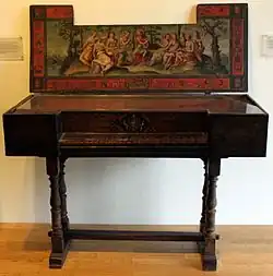 - A payment to him made in June 1542 by Edward Seymour for a pair of virginals. However, this was not unusual as a similar payment is recorded as having been made to the courtier Hugh Denys (c.1440–1511), who is not supposed to have been a musician. Money is recorded having been paid in August 1502 by Elizabeth of York, Queen of Henry VII, to Hugh Denys, reimbursing him for paying a deliveryman, or possibly their maker come in person, for a pair of clavichords, a form of virginal, thought to be amongst the earliest imported into England.[17] The transaction is recorded in the Privy Purse expenses of Elizabeth of York, August 1502: "Item, the same day, Hugh Denys, for money by him delivered to a stranger (i.e. foreigner) that gave the Queen a payre of clavycordes. In crowns for his reward, iiii libres" (£4). The reward was four times greater than the estimated value of the gift, perhaps signifying the royal mark of approval and appreciation of the maker's generosity.[18] As Alison Weir wrote of King Henry VIII "It was common for subjects to bring gifts to royalty in the expectation of a reward and such largesse or tipping was expected of a monarch".[19]