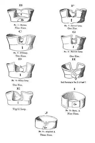 One of Hunt's popular inventions was a paper shirt collar. This time he sold the patented design and negotiated for royalty payments, but the item only became popular after he died.[3] The unusual item was first put on sale in New York City in 1854 and used then mostly for stage purposes. In time it became fashionable and the general public then started using them. High production of the item came about and at one time there were as many as forty factories making paper collars in the United States. The manufactured output in 1868 became 400,000 that were sold to the general public.[55]