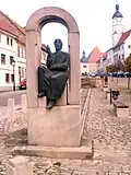 Von der Vogelweide died about 1230, and was buried at Würzburg, after leaving instructions – according to the story – that the birds were to be fed at his tomb daily. His original gravestone with its Latin inscription has disappeared, but in 1843 a new monument was erected over the spot, called the Lusamgärtchen (Little Lusam Garden), today sheltered by the two major churches of the city.[8]