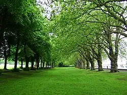 There are over 350 trees within the park, on the north side is the Lime Avenue.[10] On the river alongside the park are some bird barges, to mitigate habitat lost during building development around Point Pleasant and the Wandsworth Riverside Quarter.[11] The barges have tall posts to attract herons and cormorants, corrugated roofs for lesser black headed gulls and bird boxes for kingfishers and sand martins.[12]