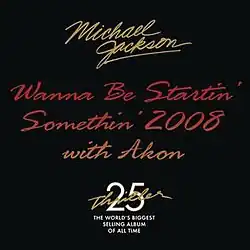 "Wanna Be Startin' Somethin'" was re-recorded for the 2008 re-issue of Thriller, titled Thriller 25. The song was titled on the CD sleeve as "Wanna Be Startin' Somethin' 2008 with Akon". Recorded in November 2007, the 2008 version was remixed, co-written and co-produced by Akon.[44] This single was the last work released during Jackson's lifetime.[67]