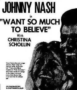 Want So Much to Believe (Swedish: Vill så gärna tro) is a 1971 romance film. It is directed by Gunnar Höglund and stars Johnny Nash and Christina Schollin. It is about a Swedish flight attendant (Christina Schollin) who falls in love with a black American man (Johnny Nash). The film was Niclas Wahlgren's acting debut.[1]