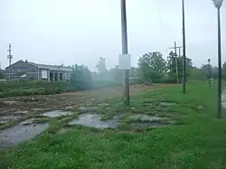 In the later months of 1965, widening of South Street through the center of Warren began. As a result, the Railway Express Agency building next to the depot was demolished for construction of a new right-of-way on the parking side of South Street. The new right-of-way would leave South Street just east of the current depot site, which required the demolition. The first rails were placed in December 1965,[8] and by January 1966, the new two track-main had been installed and put into use.[9] At that time, the old gauntlet track through Warren was being dismantled along South Street, which would be required to allow widening of South Street. It was at that point that the old station depot was closed by the Erie Lackawanna. The railroad did not put up proper signage for the change, deciding it was easier to scratch the notice of the station depot closing in the wood of the door. The freight depot located at the Pine Avenue crossing near South Street was renovated to allow a passenger depot area to be constructed within the building. The station depot back on South Street at Main Avenue was dismantled.[9]