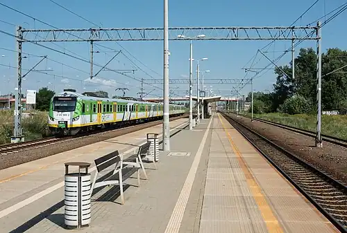 Warszawa Okęcie railway station is a railway station in the Ursynów district of Warsaw, Poland. It is served by Koleje Mazowieckie, which runs services from Warszawa Wschodnia to Góra Kalwaria and Skarżysko-Kamienna.