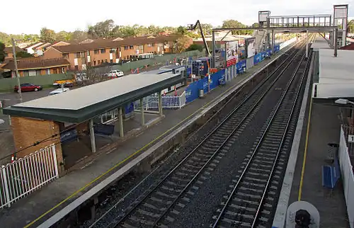The Southern Sydney Freight Line opened immediately to the east of the station in January 2013. As part of its construction, a footbridge with lifts and stairs was constructed. Previously, crossing the railway line required passengers to use the Hume Highway bridge. Platform 2 was very narrow and was widened during the works.