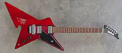• Steve Stevens Signature Model (1993) — SS80 and SS100 models made at Washburn's Chicago custom shop, the SS40 mass-produced in Korea. The SS80 was produced in black with gold hardware, a Schaller-licensed Floyd Rose tremolo, and Seymour Duncan JB humbucking pickups. The SS100 featured black hardware and Frankenstein monster graphics.