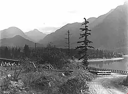 Following the establishment of the Canadian Pacific Railway (CP) station across the Fraser from Hope in the mid-1880s, First Nations ferried passengers across the river.[2] For two decades, a few indigenous families held a ferrying monopoly.[3] By 1901, they used a scow.[4]