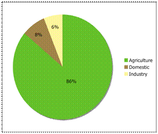 The main water-using sector in Egypt is agriculture, followed by municipal and industrial uses. Total water withdrawal in 2000 was estimated at 68.3 km3.