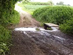 A track crosses the Wateringbury Stream by means of a ford at TQ 680 531. 51°15′08″N 0°24′30″E / 51.252208°N 0.408372°E [11]