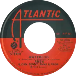 "Waterloo" is a song recorded by Swedish pop group ABBA, with music composed by Benny Andersson and Björn Ulvaeus and lyrics written by Stikkan Anderson. It is the first single of the group's second album of the same name, and their first under the Atlantic label in the United States. This was also the first single to be credited to the group performing under the name ABBA. The title and lyrics reference the 1815 Battle of Waterloo, and use it as a metaphor for a romantic relationship. The Swedish version of the single was backed with the Swedish version of "Honey, Honey", while the English version featured "Watch Out" on the B-side.