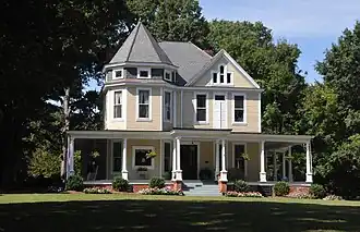 The Waxhaw–Weddington Roads Historic District is a national historic district located at Monroe, Union County, North Carolina. It encompasses 18 contributing buildings, 2 contributing structures, and 1 contributing object in a predominantly residential section of Monroe. The district developed between about 1897 and 1940 and includes notable examples of Prairie School, Queen Anne, and Classical Revival architecture styles and includes work by architects Charles Christian Hook and by G. Marion Tucker. Notable buildings include the Redwine Tenant House (1907), Robert B. Redwine House (1908), Heath House (1897), Edward Crow House (1916), and Crow's Nest (c. 1905).[2]