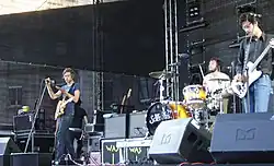 Burrows made his live debut with the band at a surprise NME awards show at Camden Barfly on February 21, 2010.[68] Demonstrating the more stripped-back guitar-centric sound of Barbara, the band were now performing predominately as a three-piece, without Max Hart, although Hart amongst other musicians would occasionally feature at live shows for performances of "After Hours". As Burrows was involved in a number of other projects, the band hired Danny Allen to perform and tour with them, with Allen occasionally handling keyboards at shows where Burrows was drumming.[28] The band released their first single from Barbara on April 5, 2010, titled "Rules Don't Stop", which peaked at number 14 in the UK Singles Chart.[69] A second single "Nice Guys" was released on June 7, the week before the release of album Barbara.[70] The band would make appearances at a number of major festivals that summer, including T in the Park, Glastonbury Festival and Reading and Leeds Festivals.