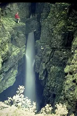 Weathercote Cave is a natural solutional cave in Chapel-le-Dale, North Yorkshire, England. It has been renowned as a natural curiosity since the eighteenth century, and was accessible to paying visitors until 1971. The entrance is a large shaft about 20 metres (66 ft) deep, dominated by a waterfall entering at one end. It lies within the designated Ingleborough Site of Special Scientific Interest.[3]
