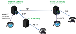 This component that mediates between WebRTC and SIP is referred to as a WebRTC Gateway. Beside connecting different WebRTC applications, a WebRTC gateway also enables the communication between a WebRTC phone and a VoIP or even a PSTN phone. Thereby, a WebRTC gateway extends the scope of WebRTC applications and enables much wider reach and usage scenarios.[2]